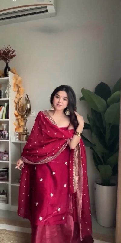 | Fabrics | Top Fabric :Jimi ChooInner : Micro Work. : thread with Sequnce Stich. : Free Size Semi Stitched extra sleeve inside attach Palazzo Fabric :- Jimi choo Dupatta Fabric : Jimi choo |