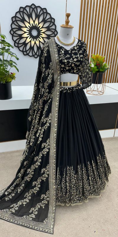 Black Faux Georgette Embroidery Sequence Lehenga Choli