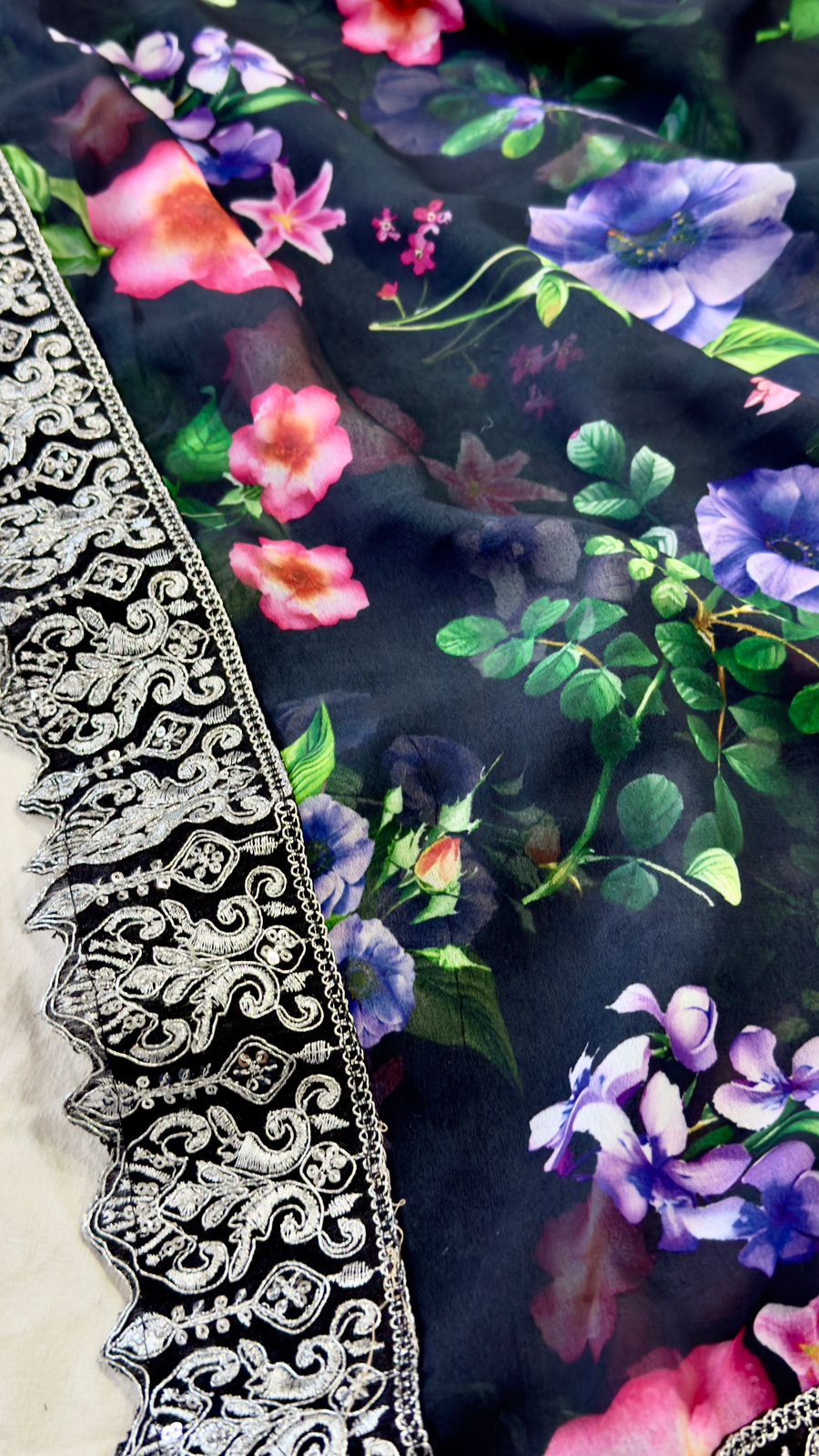 Saree Work : Digital Prints & Embroidery Codding & Sequins Work