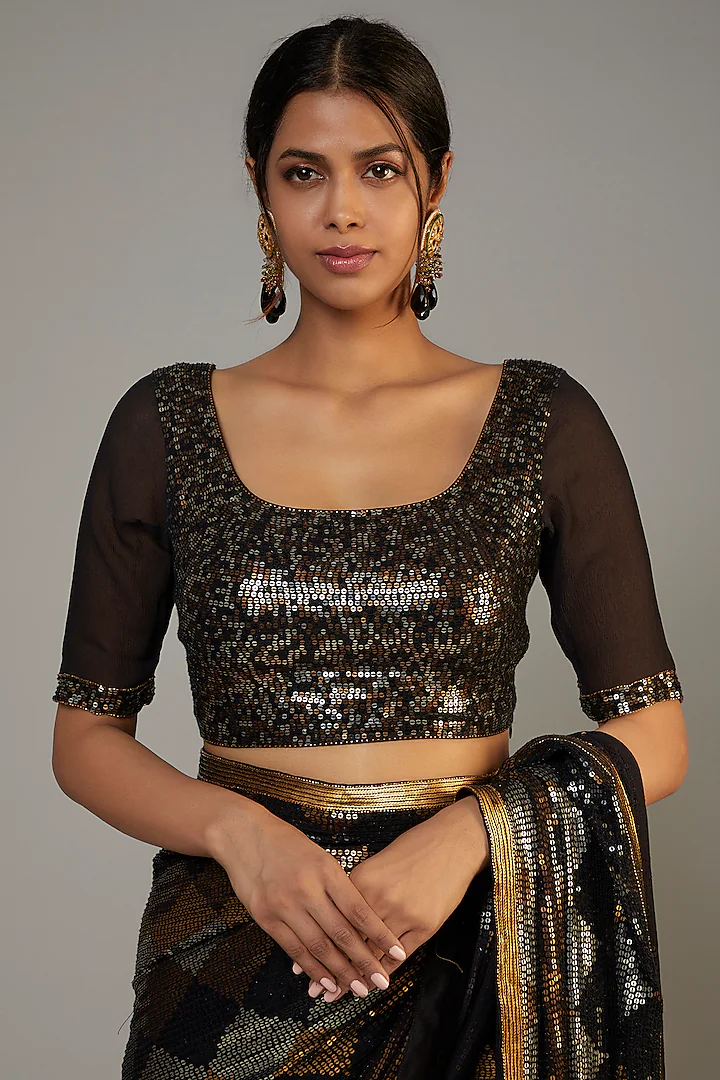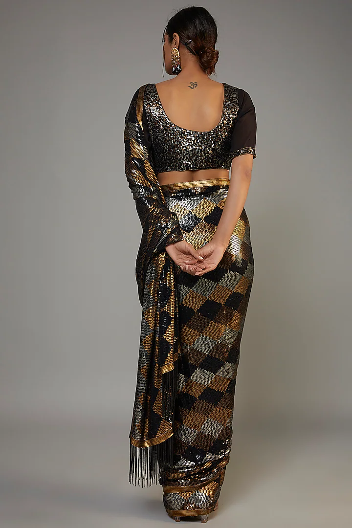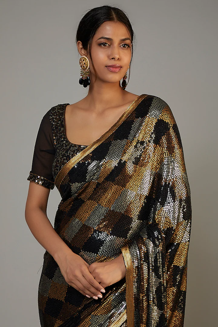 Black Georgette Sequins Work Saree