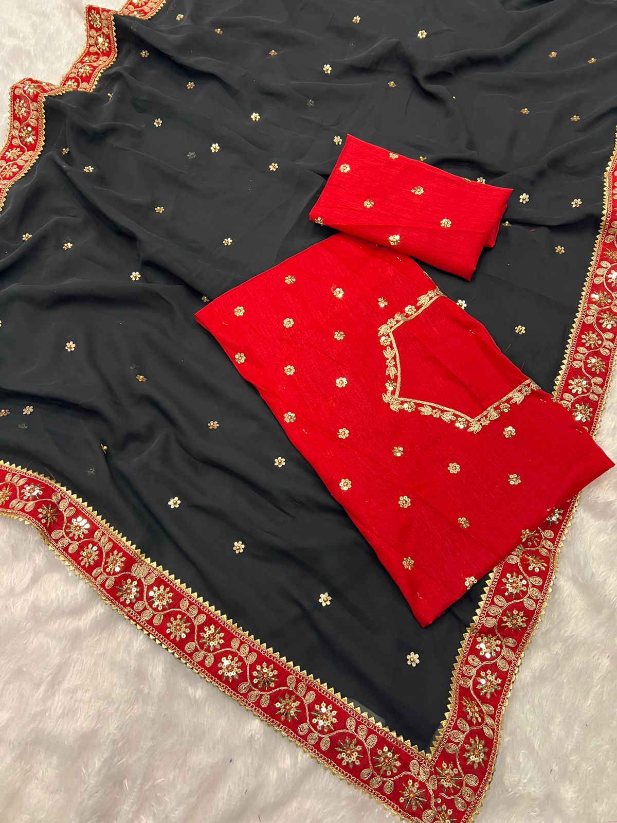 Saree Work : Fancy Dori Thread & Sequnce With Handcrafted Butti A Moti Work