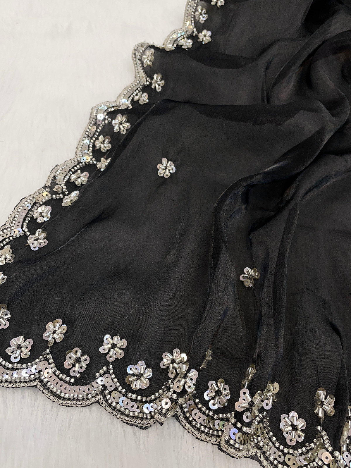 Saree Work : Heavy Embroidery Real Wal & Moti With Sequence C-Pallu Cut work Border Work