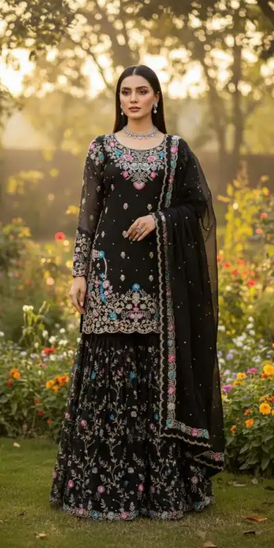 Black Organza Silk Sequence Moti Work Salwar Suit