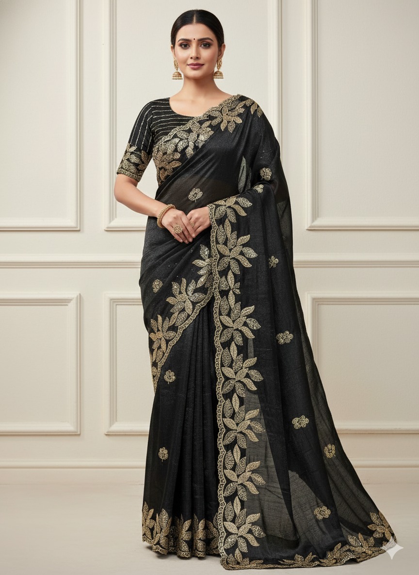 Blouse Fabric- Soft Organza Silk With Beautiful Sequins Embroidery