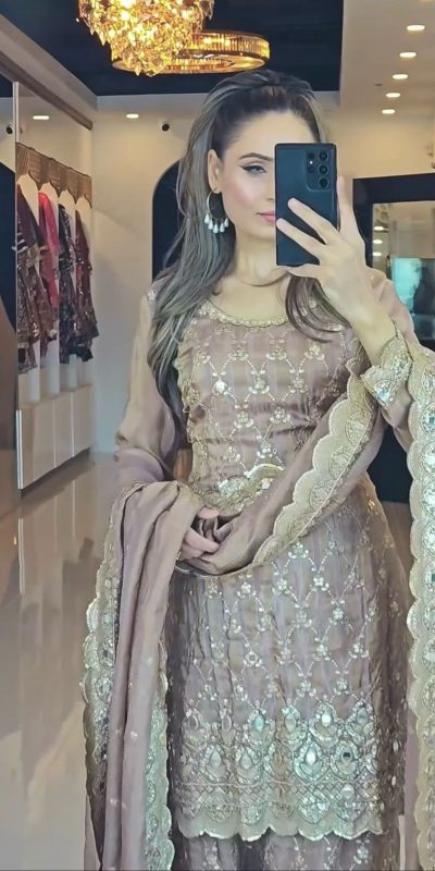 | Fabrics | Top Fabric :Pure Heavy Chinnon Silk With Heavy Embroidery Sequence Work with Real Mirror Hand Work With Full Sleeve Top Inner : Heavy Micro Cotton Top Size : Free Size Fully Stitched Ready To Wear Top Length : 38-39 Inch Palazzo Fabrics : Pure Heavy Chinnon Silk With Embroidery Sequence Work With Real Mirror Hand Work Full stitched Pent Length:40-41 Inch Dupatta Length: 2.10 MTR |