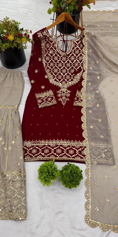 Classic Red Color Faux Georgette With 5mm Embroidery Sequence Thread Work Salwar Suit