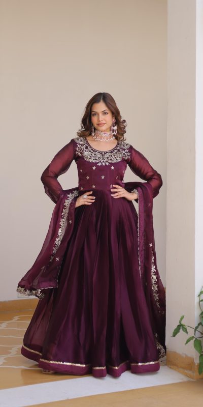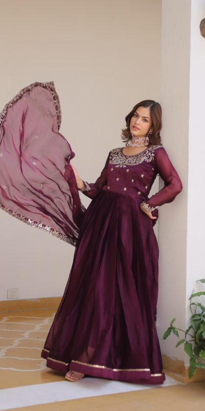| Fabrics | Gown Fabric :- pure Burberry silk Work :- Heavy sequence Embroidery Work with readmit less Inner :- Micro Cotton Flair :- 3.5mtr Size :- Free Size Semi Stitched (Fully Stitched)Dupatta Fabric :- pure Burberry silk Work :- Heavy sequence Embroidery Work Size :- 2.30 Meter |