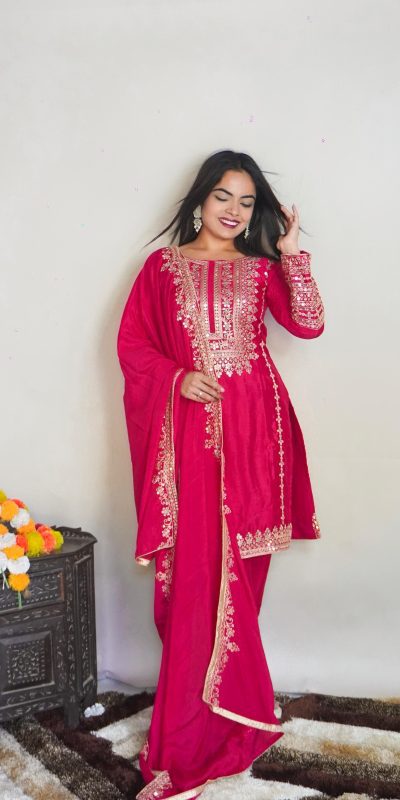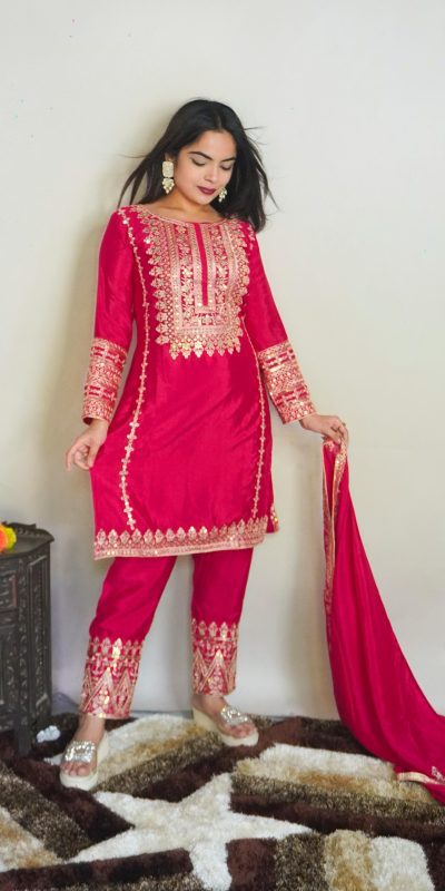 | Fabrics | Top :::Pure Chinnon Silk Work : Heavy Embroidery Sequence Work With Full Sleeve Length : 39-40 Inch Inner : Micro Cotton Bottom: Pure Chinnon Silk With Heavy Embroidery Sequence Work With Elastic (Full stitched) Bottom Length:40-41 Inch Dupatta : Pure Chinnon Silk Work :Pure Chinnon Silk With Embroidery Sequence With Lace Border |