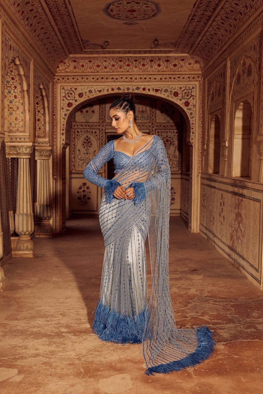 Firozi Mono Net Sequins Saree