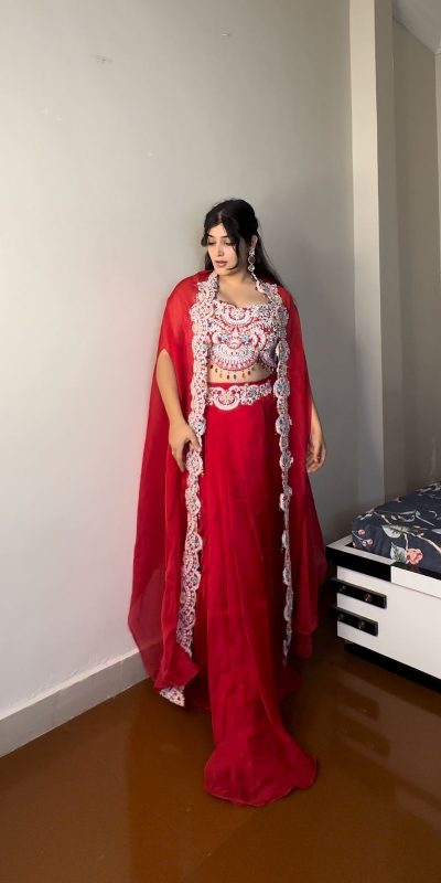 | Fabrics | Blouse fabric : Georgette Work : Sequence Embroidery Work With Diamond On Front Multi Color Crystal Latkan Lace On Border Inner : Micro Height: 15.5”inch Size : Free Size Full stitched Skirt fabric : georgette (Free Size) Work :sequence Embroidery Work Height : 46”inch Koti fabric: Georgette Work : Sequence Embroidery Lace On Neck Side With Diamond Work |