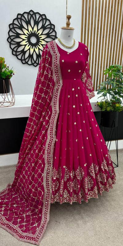 | Fabrics | Gown Fabric : Faux Georgette Gown Length :53-54 Inches Inner : Micro Cotton Work :Sequence Embroidery Work Size : Free Size Type : Semi Stitched Gown Flair : 3 M Bottom : No Type : Semi Stitched Dupatta Fabric : Faux Georgette Work : Embroidery Sequence work and Lace Border Dupatta Length : 2.10 mtr |