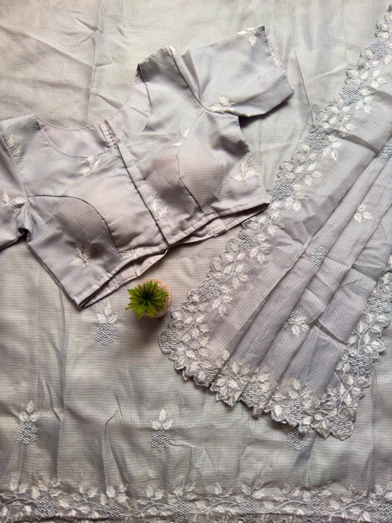 Kota Doriya With Multi Thread Work And Slapp Border Blouse Running Kota Doriya Fabric With Sleeves Work On Border Un stitched Blouse |