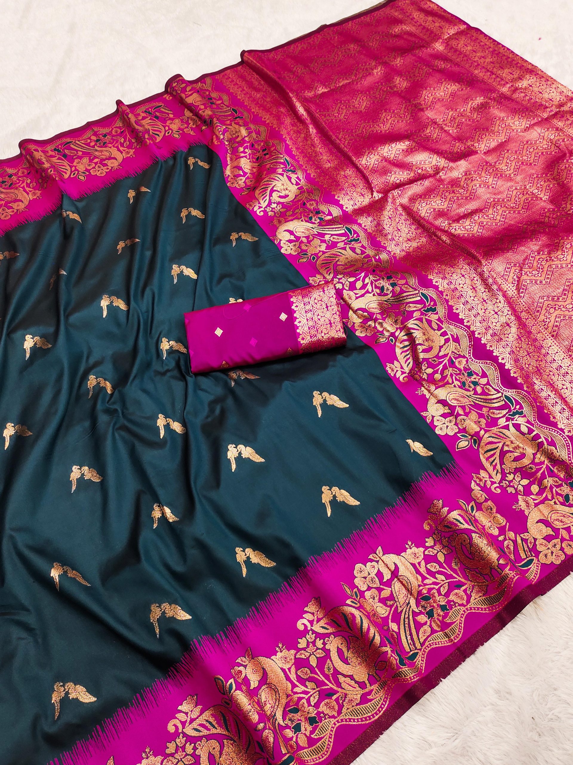 Navy Blue Banarasi Silk Weaving Lace Zari Work Saree