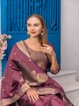 Onion Chanderi Jacquard Zari Work Salwar Suit