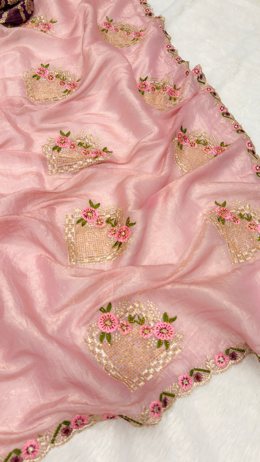 Saree Work : Beautiful Floral Embroidery all Over The Saree