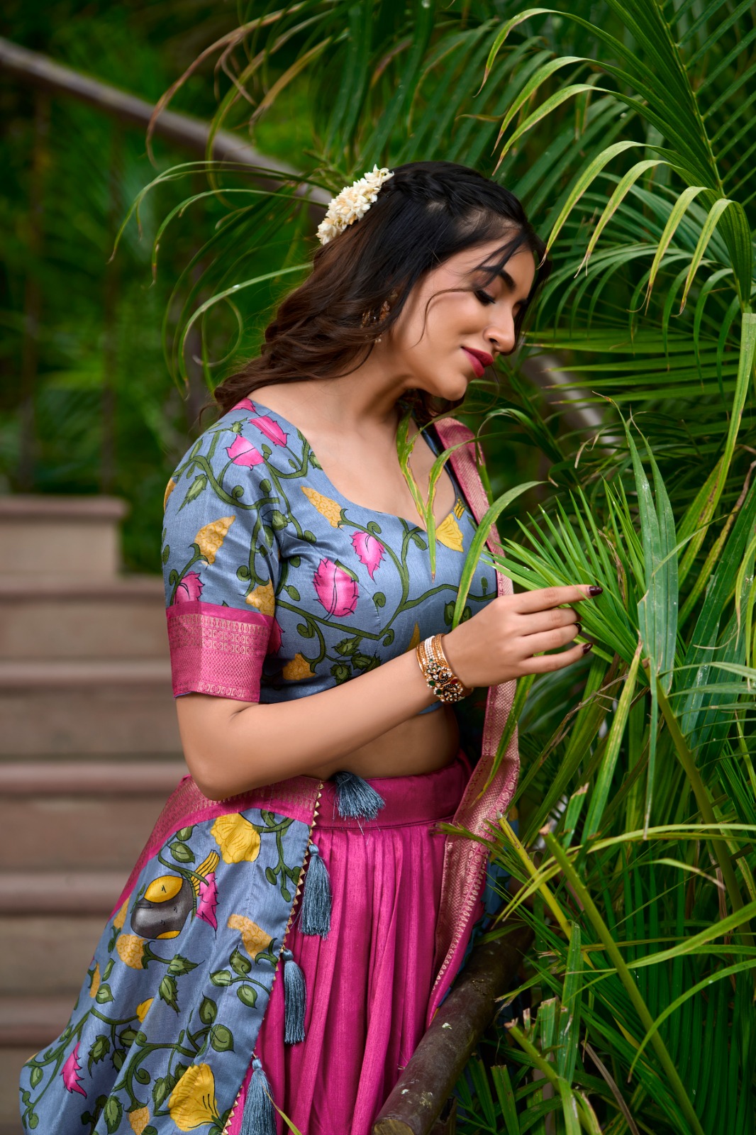 Pink Dola Silk Kalamkari Print Zari Lehenga Choli