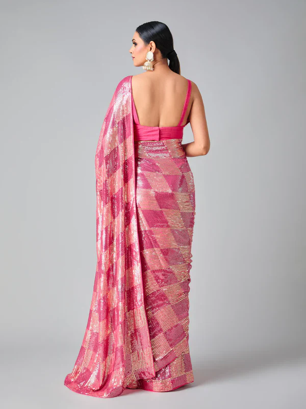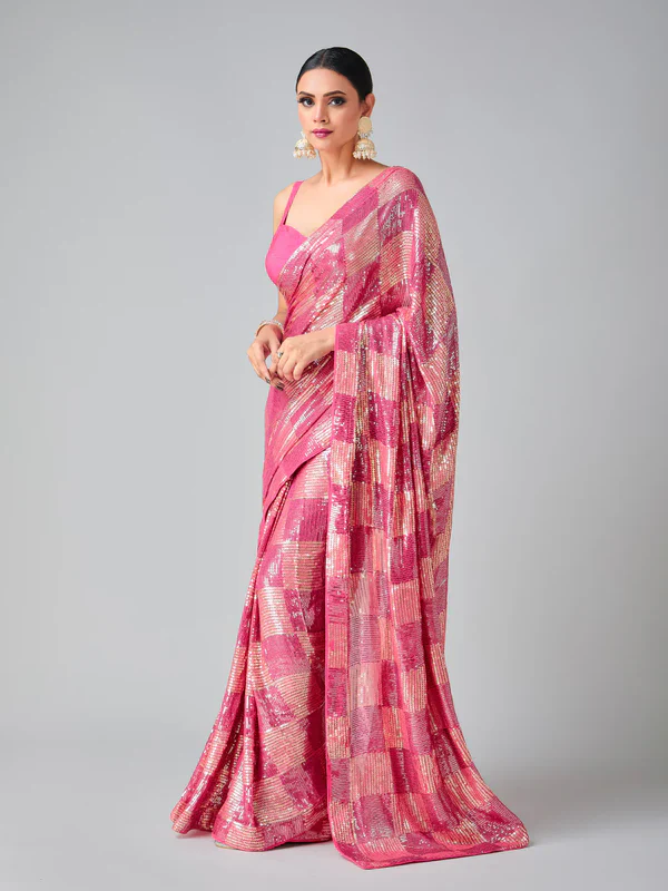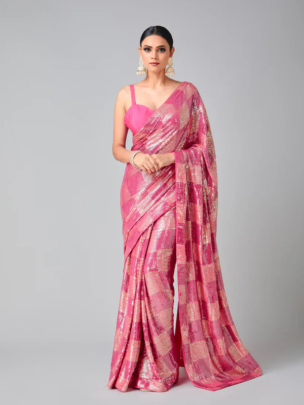 Dual Sequins Of 3mm & 5mm Sequins Work In Saree
