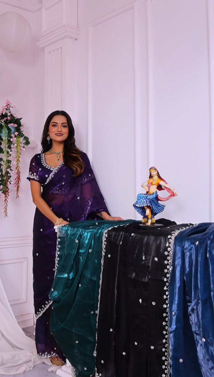 Saree Work : Heavy Embroidery Real Wal & Moti With Sequence C-Pallu Cut work Border Work