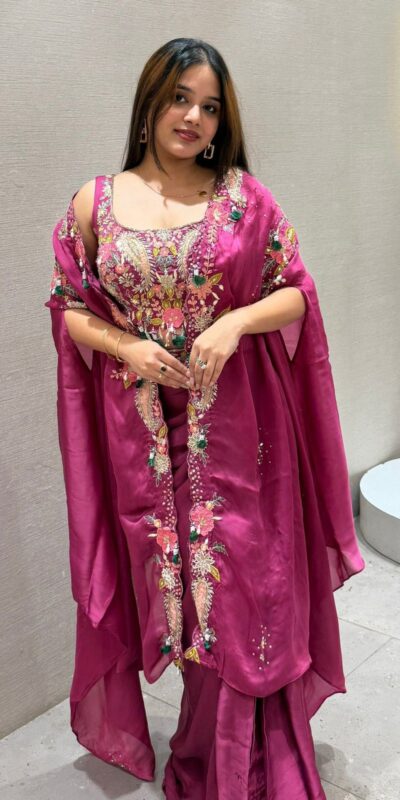 Rani Pink Rangoli Silk Embroidery Work Dhoti Suit