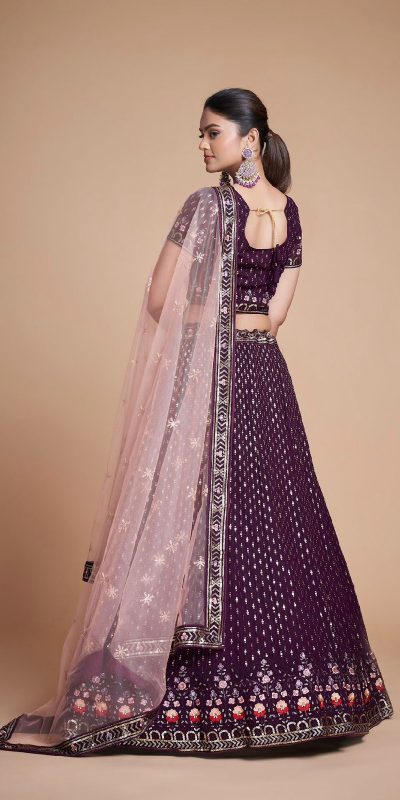 Coffee Georgette Embroidery Sequins Lehenga Choli