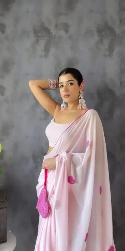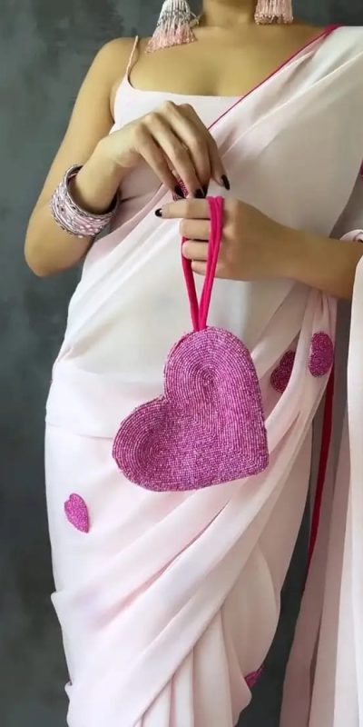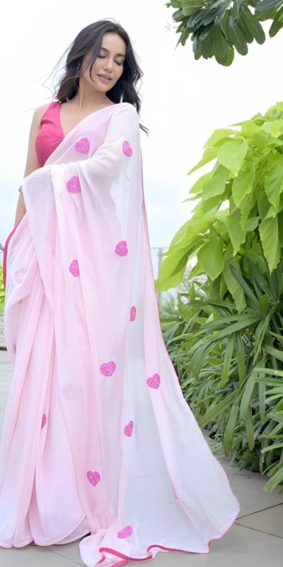 Light Pink Soft Georgette Silk With Embroidery Heart Design Saree