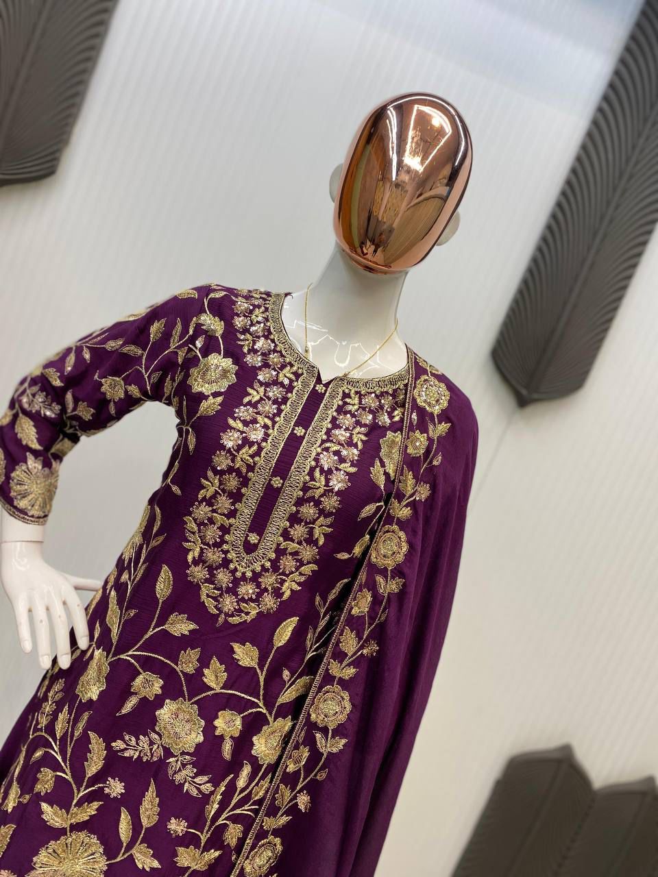 Wine Chinon With Lace Embroidery Work Salwar Suit